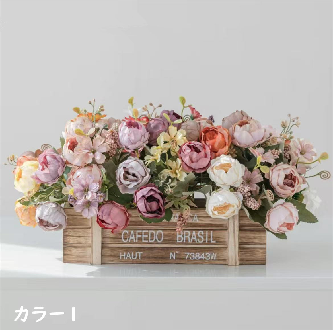 田園風 造花 木柵 デコレーション 置物 フラワーアレンジメント 観葉植物 手作り 枯れない 水やり不要 本物そっくり 光触媒 アートフラワー インテリア 玄関飾り 喫茶店 開店祝い ギフト オフィス