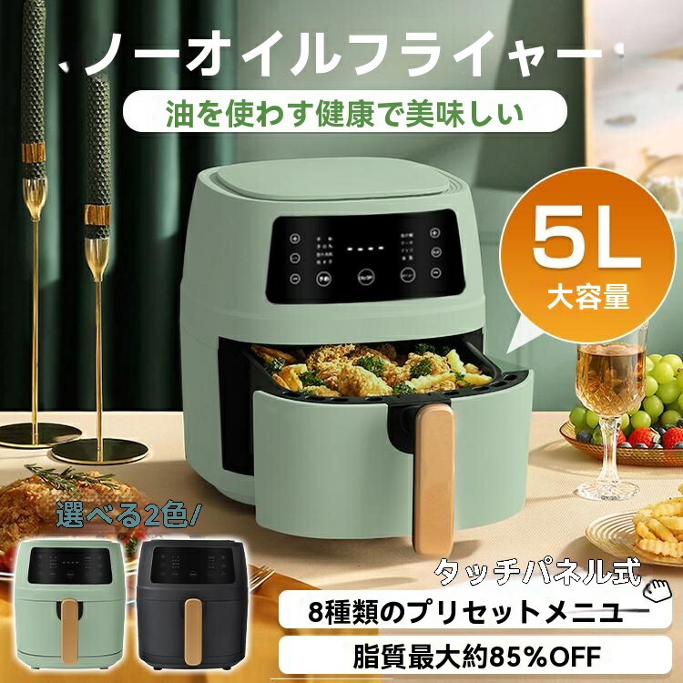 フライヤー 家庭用 油なし 電気 卓上 油なし揚げ 温度調整 タッチパネル 5L 揚げ物器 からあげ 串揚げ おしゃれ 新生活 ミニフライヤー 家電 エアーフライヤー エアオーブン ノンオイル 調理