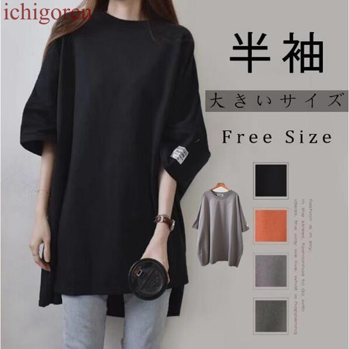 Tシャツ ロング丈 チュニック 半袖 体型カバー ゆったり おしゃれ 韓国ファッション浴衣単品 トップス
