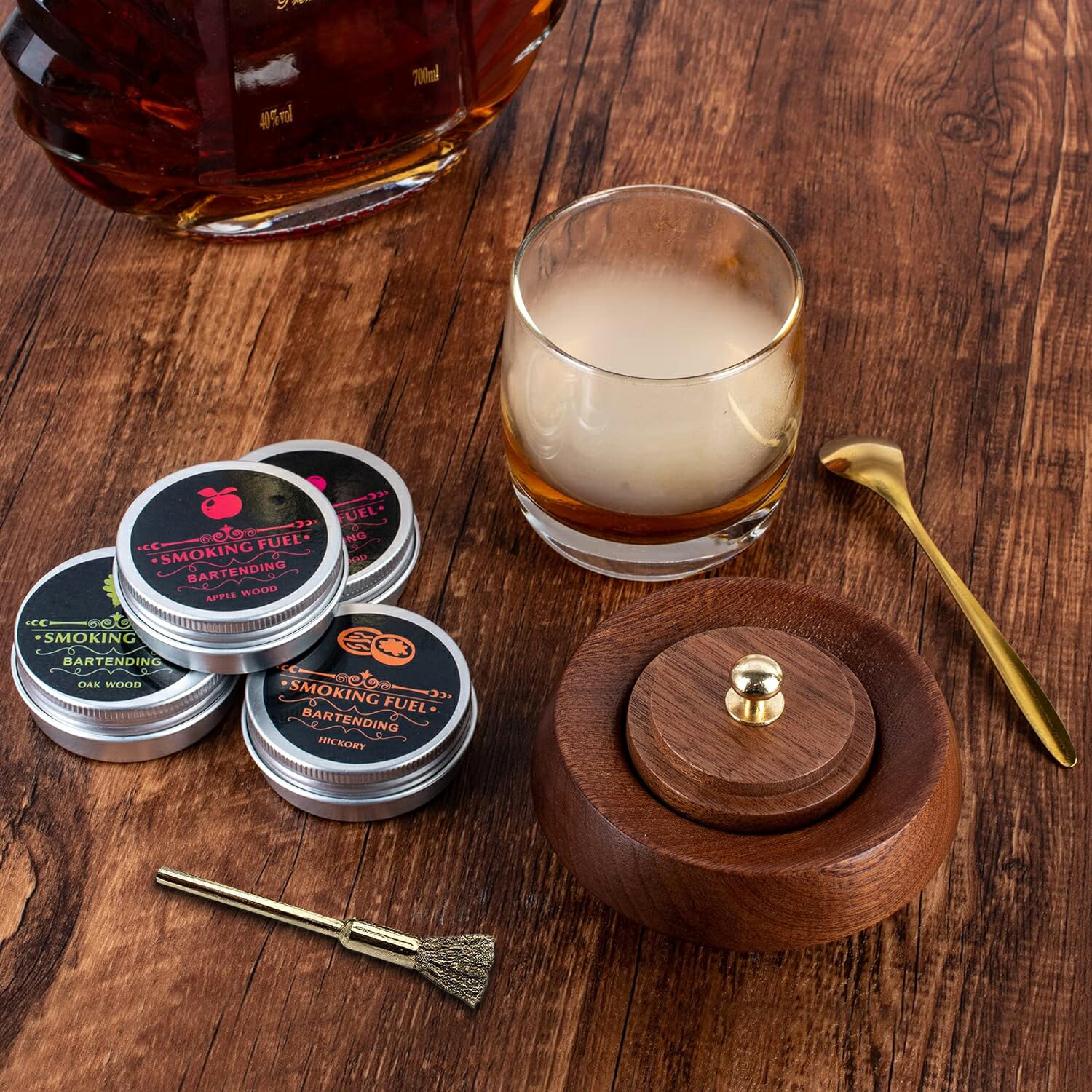 カクテルスモーカー 燻製器 スモーキングガン 木製カクテルスモーカーキット 燻製機 フードスモーカー インフューザーキット ワイン コーヒー バーベキュー ウッドチップ ウィスキー愛好家ギフ ドリンク