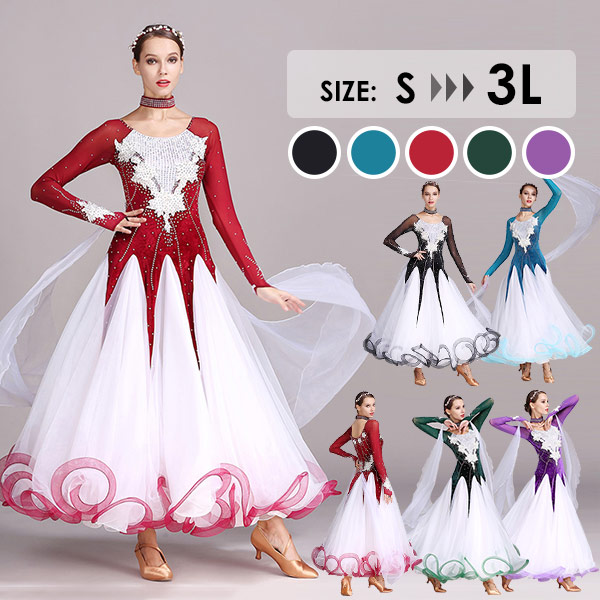 イツモストア 社交ダンス ドレス 社交ダンス衣装 初心者 練習着 競技着 ワンピース 豪華 長袖 大合唱 モダンダンス モダンドレス スタンダード レッスン着 広がる裾 開場ドレス 競技用 練 演出服