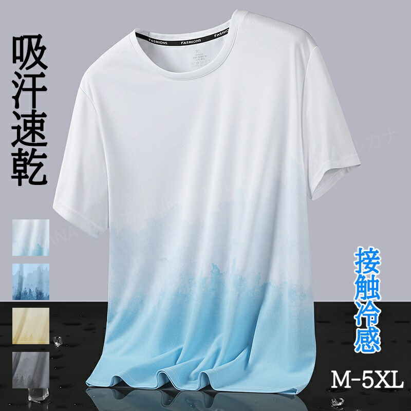 夏服 メンズ tシャツ 半袖 大きいサイズ 吸汗速乾 接触冷感 ドライtシャツ ゆったり 通気メッシュ トレーニングウェア スポーツジム カジュアル ランニング ストレッチ 薄手 無地 軽量 イ 丸首