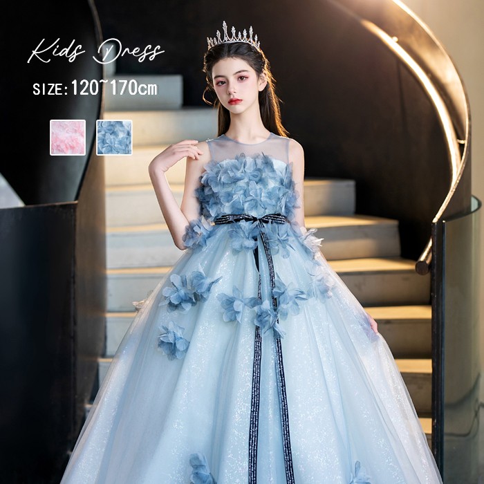 ドレス 子供 発表会 ブルー ピンク 結婚式 女の子 ジュニア ピアノ発表会 120 130 140 150 170