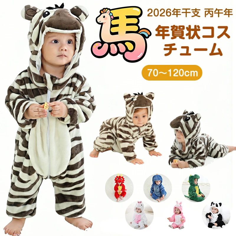 着ぐるみ ベビー 子供 正月 干支 丙午 馬 動物 干支 赤ちゃん 着ぐるみ ベビー着ぐるみ 動物パジャマ コスプレー 赤ちゃん 動物 干支 年賀状仮装 変装グッズ 年賀状撮影 70/80/90/100