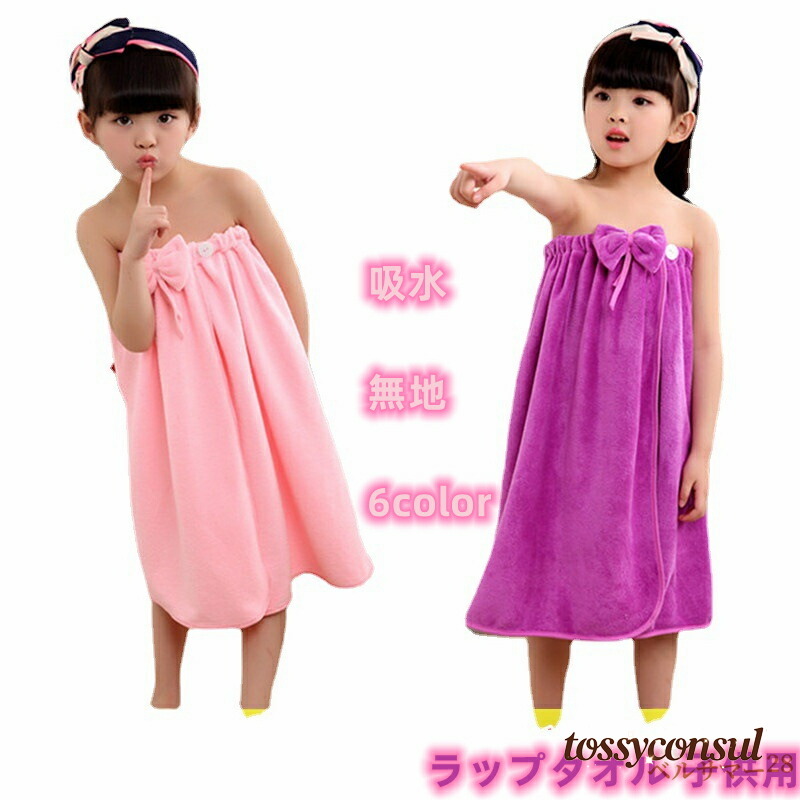 ラップタオル キッズ 80cm 女の子 100cm リボン かわいい プール 水泳 無地 温泉 プールタオル 巻きタオル マイクロファイバー こども用 吸水 バスタオル ビーチタオル 海 ピ おしゃれ