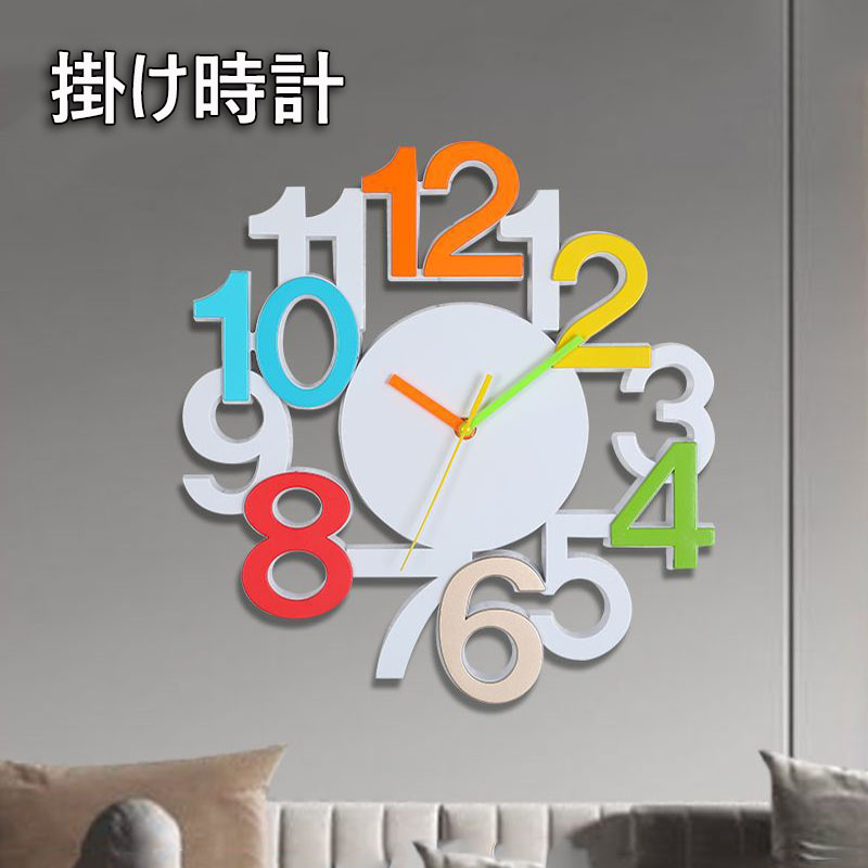 掛け時計 時計 壁掛け カラフル おしゃれ かわいい 人気 音がしない 連続秒針 静か 静音 見やすい ウォールクロック モダン インテリア時計 乾電池 寝室 リビング 子供 子供部屋 リビ キッチン