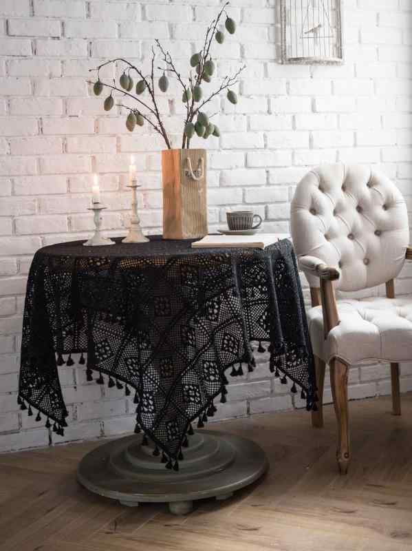 テーブルクロス おしゃれ レトロ タッセル インテリア かぎ針編み ラウンド型 正方形 キッチン リビング ダイニング アメリカン 緑 ベージュ 黒 多用途