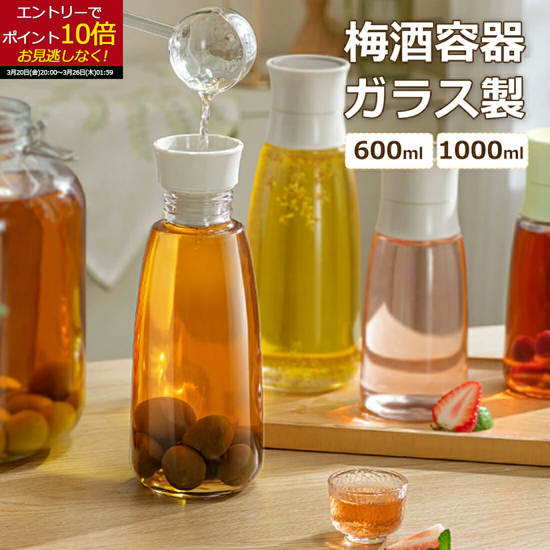 【10倍+15%クーポン3月20日20:00から】梅酒・果実酒用ガラス瓶(600/1・注ぎ口付き)梅酒 ビン