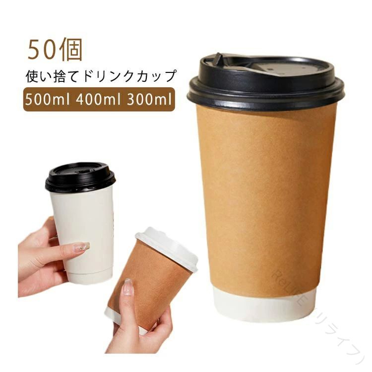 蓋付き紙コップ50個セット二重クラフト断熱タイプ500ml400ml300ml対応紙カップテイクアウト保温保冷断熱使い捨て容器業務用エコ容器デザートコーヒーラテラテアートドリンクカフェプラカップ美容室