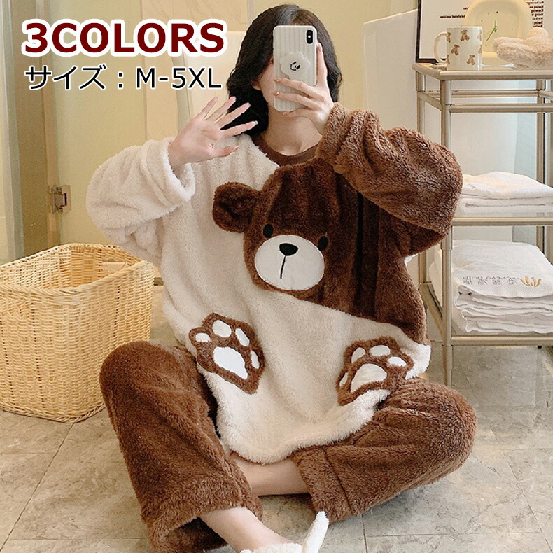 着心地よ かわいい プレゼント 誕生日 ギフト コットン 5L 4L 大きいサイズ 長袖 ルームウェア 上下セット パジャマ レディース