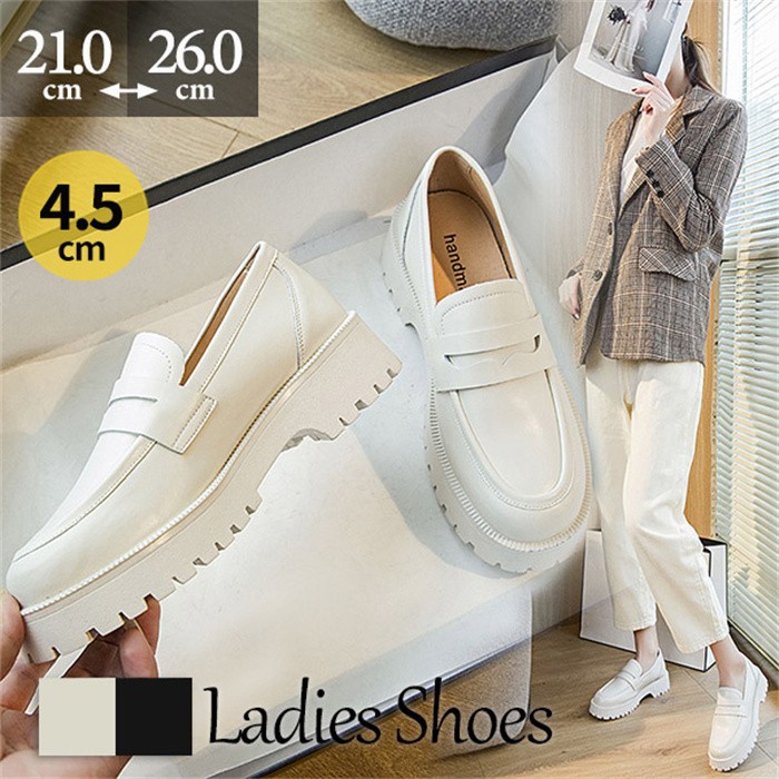 厚底ローファー レディース コインローファー 4.5cmヒール 痛くない 歩きやすい 靴 軽量 トラックソール マニッシュシューズ シンプル 大人 カジュアル 通勤 おしゃれ スタイルアップ 2 通学