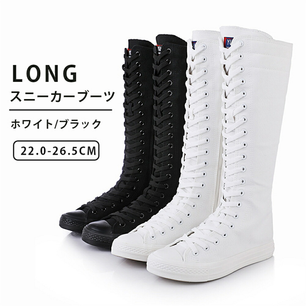 スニーカーブーツ ロング レディース ダンスブーツ ロングブーツ 黒 白 サイドジップ 編み上げ ダンスシューズ チーム衣装 コスプレ靴 長靴 疲れにくい コスチューム