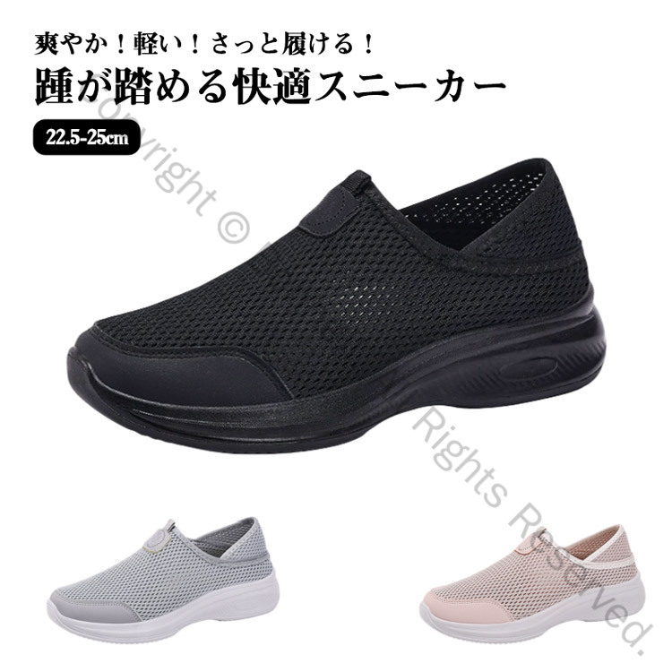 スリッポン レディース ナースシューズ かかと踏める 靴 スニーカー メッシュ 通気性 厚底 軽量 軽い 黒 白 春夏 疲れにくい シューズ 立ち仕事用 疲れない靴 上履き 大人 ナ 紐なしスニーカー