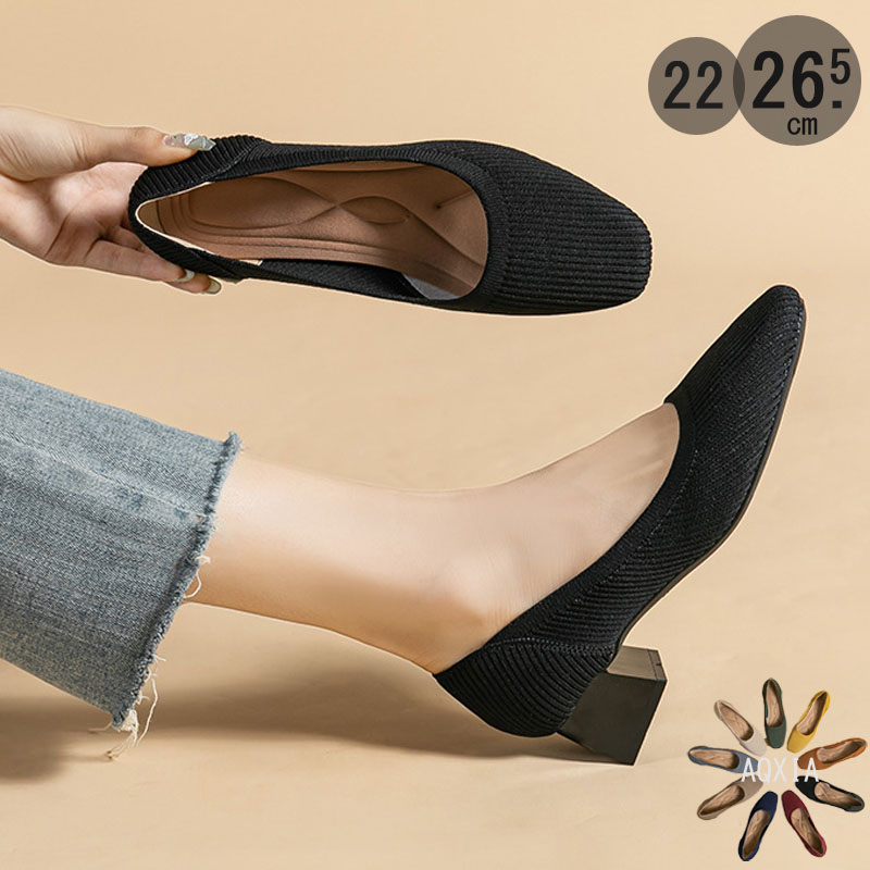 ニットパンプス 靴 パンプス 痛くない 春ブーツ 歩きやすい 走れる スクエアトゥ 4センチヒール フラット レディース シューズ ニット素材低反発 小さいサイズ 大きいサイ 柔らか