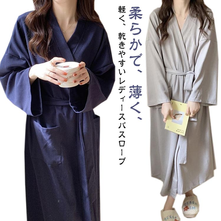 バスローブ レディース ナイトガウン バスグッズ 吸水 軽量 薄手 長袖 春秋 タオル地 ガウン 温泉 ポケット付き ルームウェア 膝丈 前開き さらさら お風呂上り 速乾 寝巻き パジャマ ギフト