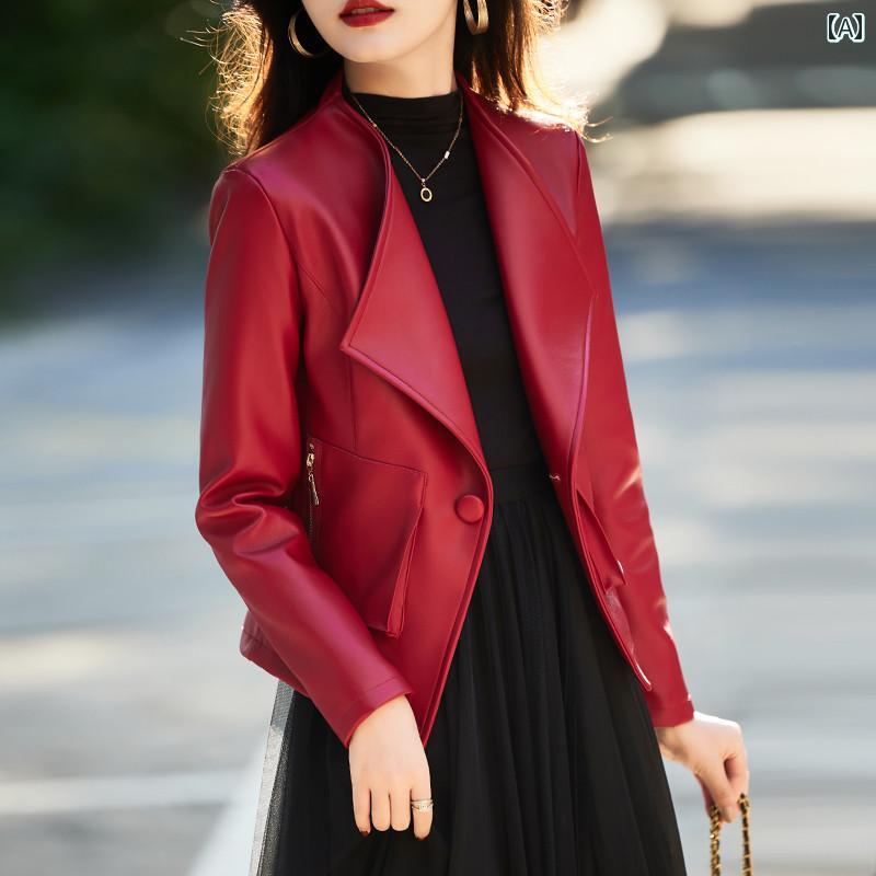 レザー ジャケット レディース おしゃれ ライダース 春秋 カジュアル ワインレッド ブラック ブラウン ショート