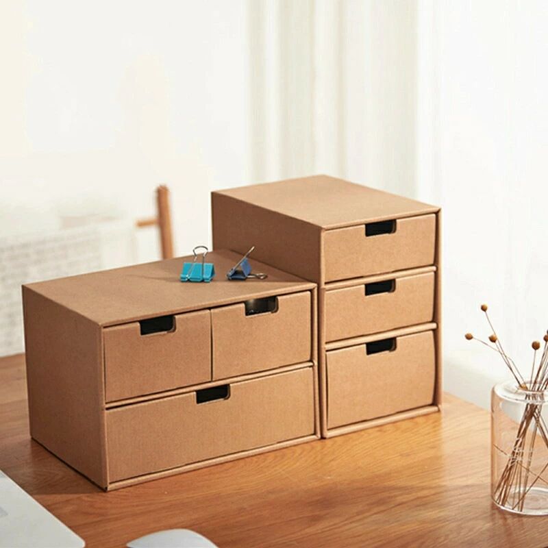 クラフト紙 引き出し式収納ボックス オフィス書類整理 マルチレイヤー仕切り ファイル レシート収納 シンプルデザイン
