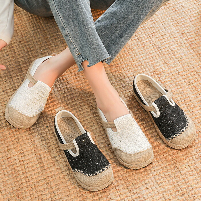 婦人靴 カジュアル エスニック レトロ おしゃれ 布靴 レディース 春夏 女性用 刺繍 学生用 フラット 通気性 シングル シューズ リネン サボ 疲れない 痛くない アジアンテイスト