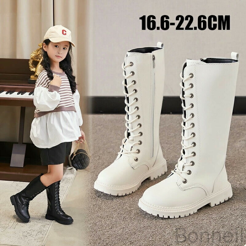 ダンスブーツ 子供 キッズ ジュニア 編み上げ 厚底ブーツ 白 ブラック 防寒 軽量 ローヒール ロング ミドル丈 防水 滑り止め ファスナー付き HIPHOP フォーマル靴 お出かけ 入学 JAZZ