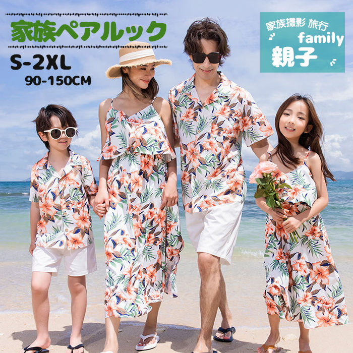 親子コーデ 親子お揃い 親子ペア アロハシャツ リンクコーデ 親子 セット カップル お揃い ペアルック 男の子 女の子 家族ペアルック ママ パパ 花柄ワンピース メンズ アロハシ レディース