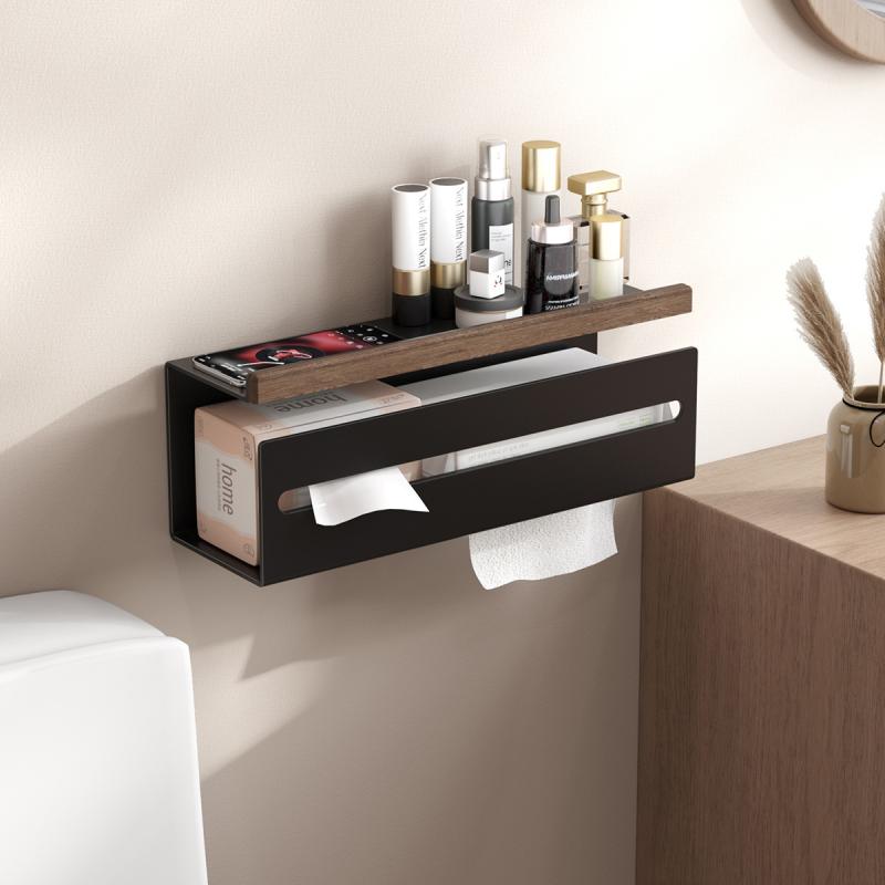 ペーパーホルダー 穴あけ不要 賃貸OK ウォールナット材 天然木製 トイレットペーパー ティッシュケース ハンドタオル フェイスタオル 収納ラック バスルーム 洗面所 小物置き 北欧風 トイレ