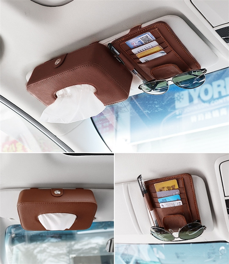車内で使いやすいティッシュケースとメガネ収納が一体化した便利な収納グッズ 多機能設計で快適ドライブをサポート