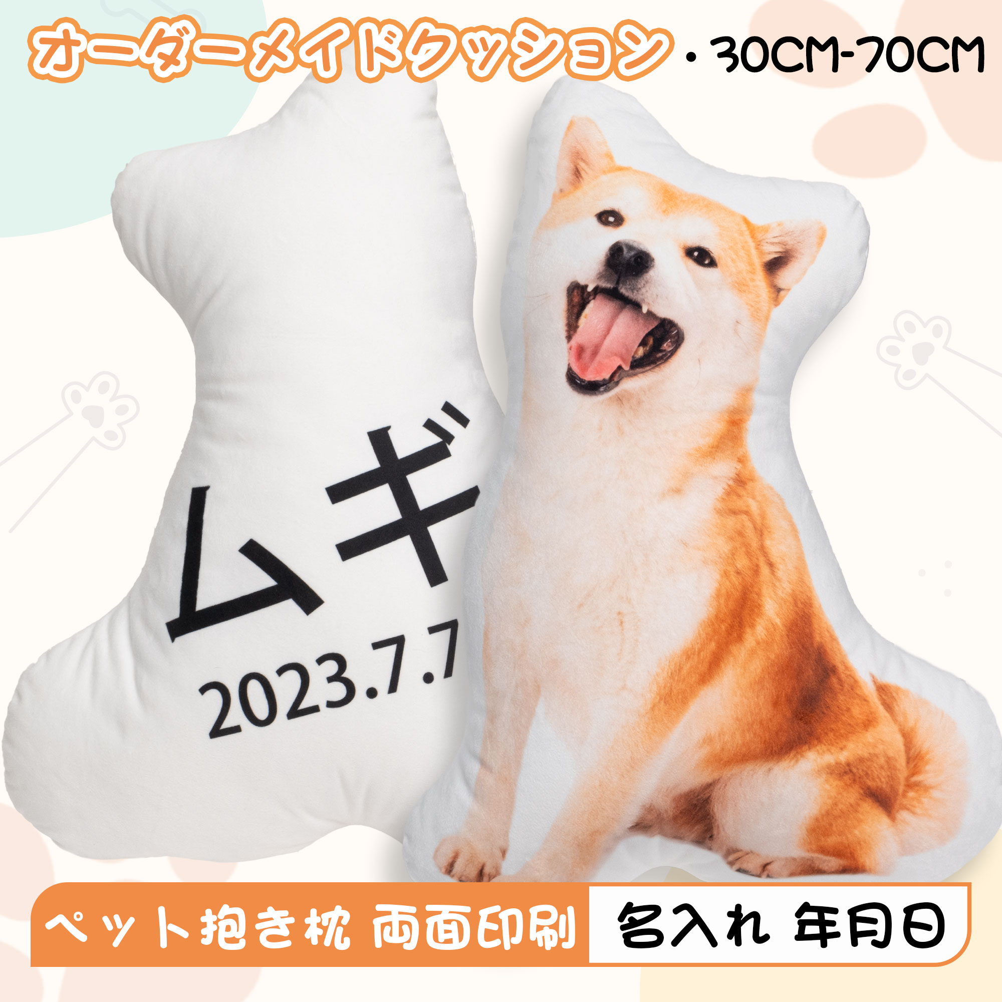 メモリアルクッション オーダーメイド 名入れ 写真入り 両面印刷 クッションカバー ペット供養用 記念品 30x30cm 40x40cm 室内用 ギフト