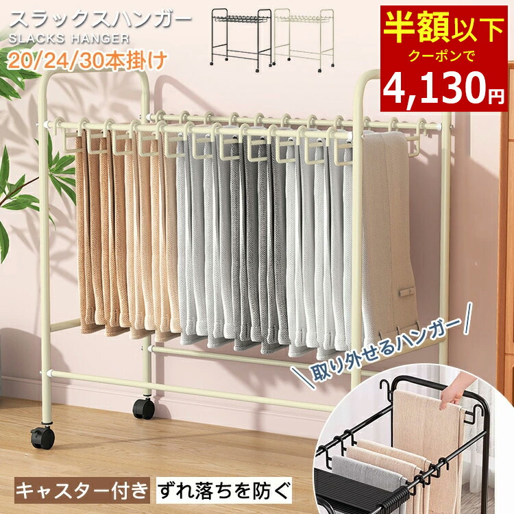 スラックスハンガー 20本掛け 24本掛け 30本掛け キャスター付き スチール製 大容量 押入れ収納 衣類収納 ウォークインクローゼット タオル掛け ハンガー 物干し 大容 スラックスハンガーラック