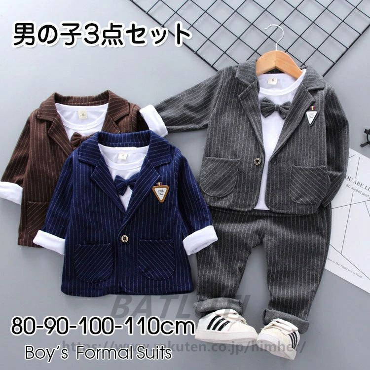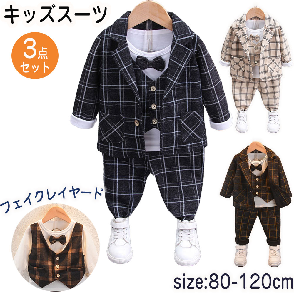 キッズ スーツ フォーマル 男の子 80 3点セット セットアップ おしゃれ 長袖 子供スーツ 紳士風 ベビー 蝶ネクタイ フォーマルスーツ 七五三 卒業式 入園式 結婚式 入学式
