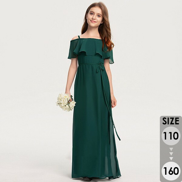 子供ドレス ワンピース ロング丈 オフショルダー キャミソール ピアノ発表会 ドレス 長袖 女の子 フォーマルドレス パーティードレス 結婚式 七五三 フラワーガール キッズドレス グリーン 発表会