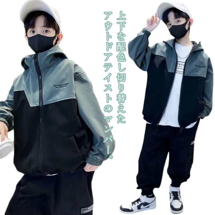 フード付 男の子 ウインドブレーカー 春秋 ウィンドブレーカー アウター 子供服 春 無地 配色 130 120 150 160 ブルゾン キッズ