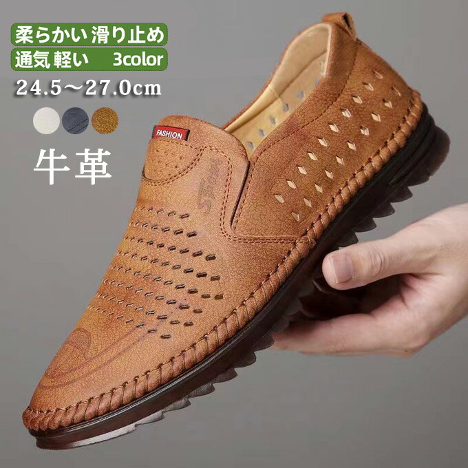 ビジネスシューズ メンズ メッシュサンダル 革靴 牛革 スリッポン ビジネスサンダル カジュアル 通気性抜群 男性用 滑り止め 軽量 蒸れない 通気性 柔らかい 簡単着脱 事務室 紳士靴 職 オフィス