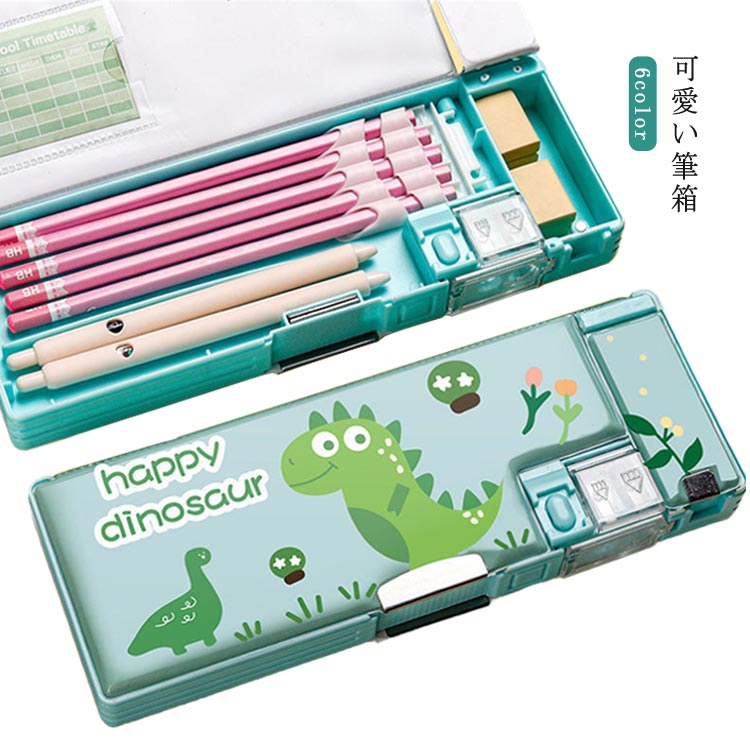 恐竜 筆箱 箱型 コンパクト クマ 鉛筆削り付き 筆入れ 可愛い 大容量 マグネット ふでばこ 小学生 小学校 男の子 ペンケース かわいい おしゃれ 女の子