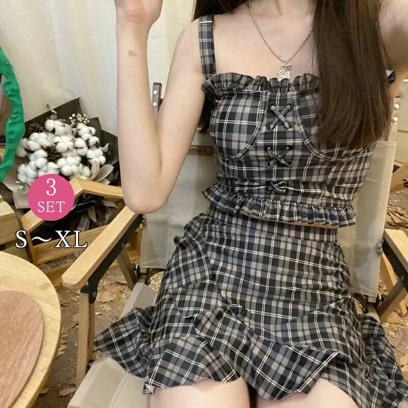 水着 スイムウエア みずぎ レディース 20代 30代 チェック柄 女性用 セパレート サロペット水着 バンドゥ水着 タンキニ ビキニセット 上下セット 大人 ビーチ 温泉旅行 水遊び リゾート 海