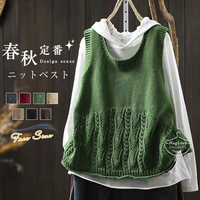 バックスリットニットベスト レディース 春 秋 ノースリーブ トップス ニット セーター レイヤード 重ね着 体型カバー