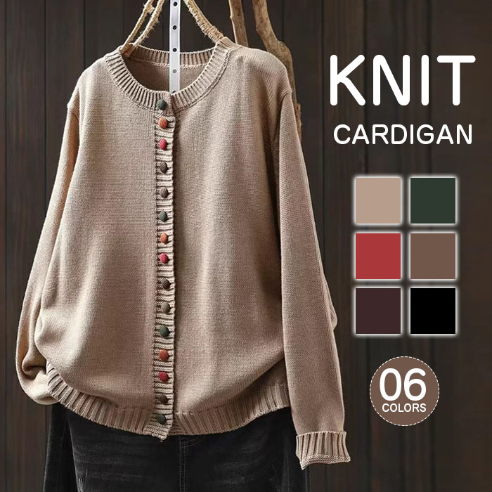 綿 ニットカーディガン レディース 長袖 カーディガン 秋冬 ニット トップス 前開き アウター 羽織る カーデ 上品