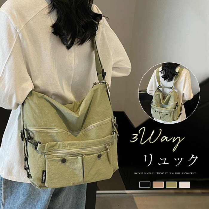 3wayバッグ レディース リュック ショルダーバッグ トートバッグ キャンバスバッグ 帆布 斜めがけ 肩掛けバッグ 手提げ 3way 2wayバッグ 無地 軽い シンプル おしゃれ コンパクト 軽量