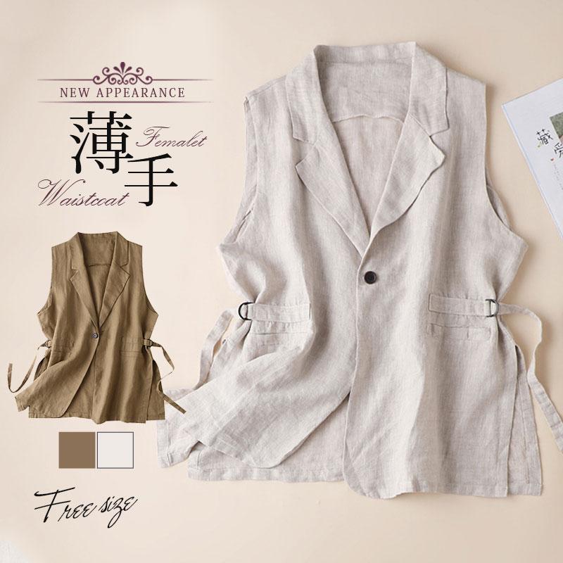 ベスト ジレ レディース テーラード リネン風 飾り帯 前開き 羽織 チョッキ アウター 無地 おしゃれ 体型カバー カジュアル 上品 細身