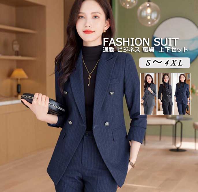 新着 秋冬 スーツセット パンツスーツ セレモニースーツ 上下セット レディース 女性用 フォマール パーティー 出勤 サラリーマン ビジネス 通勤 卒業式 結婚式 ストライプ 入学式